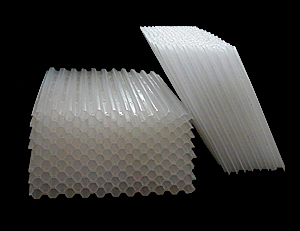 六角形蜂窩填料(斜管填料)材質(zhì)有聚丙烯(pp)聚氯乙烯(pvc)乙丙共聚三種。組裝形式的斜管和直管兩種形式。